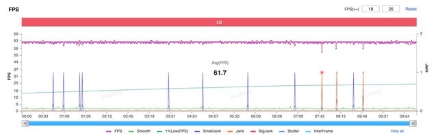 Biểu đồ FPS theo thời gian thực cho thấy Galaxy S25 Ultra duy trì FPS ở mức cao, trung bình là 61,7 FPS. Nếu tựa game này được tối ưu tốt hơn cho Android, Galaxy S25 Ultra chắc chắn có thể duy trì FPS 120 mượt mà mà không gặp phải sự cố nào.