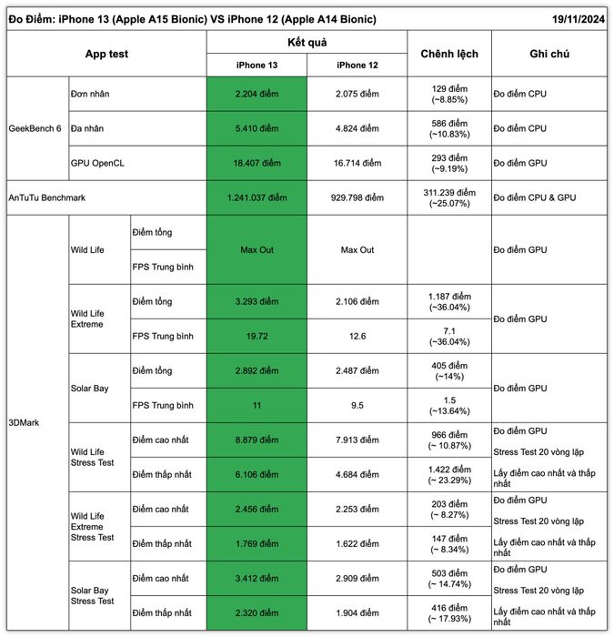 So sánh điểm hiệu năng giữa iPhone 13 và iPhone 12