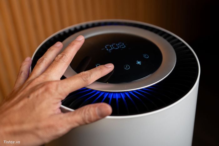 Đèn LED hiển thị tình trạng không khí trong phòng: màu xanh dương là không khí sạch, màu cam là ở mức trung bình, và màu đỏ báo hiệu không khí kém. Thường thì bạn sẽ thấy đèn xanh, vì khi không khí không tốt, máy sẽ tự động điều chỉnh để cải thiện chất lượng không khí.
