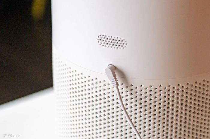 Ngay phía trên cổng cắm điện là cảm biến đo lượng hạt PM 2.5 trong không khí, giúp theo dõi chất lượng không khí và thông báo lên bộ điều khiển, đồng thời điều chỉnh màu đèn LED tương ứng với mức độ ô nhiễm, hỗ trợ cho chế độ tự động của máy.