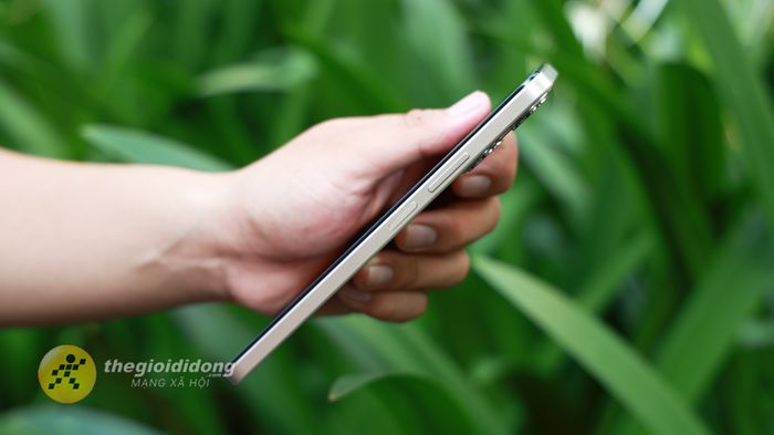 Khung máy bằng nhựa với các góc bo tròn mềm mại giúp tối ưu trải nghiệm cầm nắm. Bên phải là tổ hợp nút nguồn tích hợp cảm biến vân tay và nút điều chỉnh âm lượng. Phần đáy trang bị cổng USB-C, loa ngoài, jack mm cùng khe SIM kết hợp thẻ nhớ. Đạt chuẩn IP64, máy có khả năng kháng bụi và chống nước bắn, phù hợp cho nhiều môi trường sử dụng.
