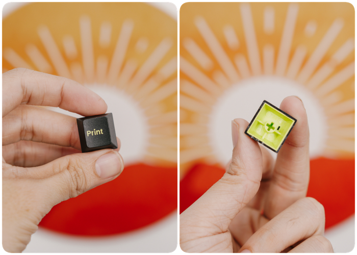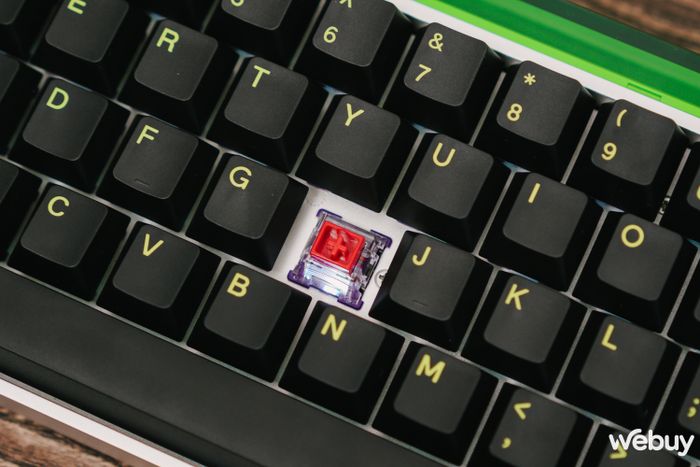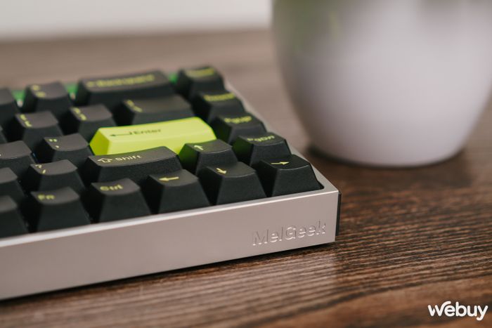 MelGeek đã lựa chọn keycap PBT dày dặn cho bàn phím này, được chế tác theo phương pháp double-shot với chữ màu xanh lá nổi bật. Cá nhân tôi đánh giá cao keycap PBT hơn, vì loại nhựa này giảm thiểu hiện tượng ‘bóng dầu’, rất phù hợp với những ai có mồ hôi tay nhiều hơn so với nhựa ABS.