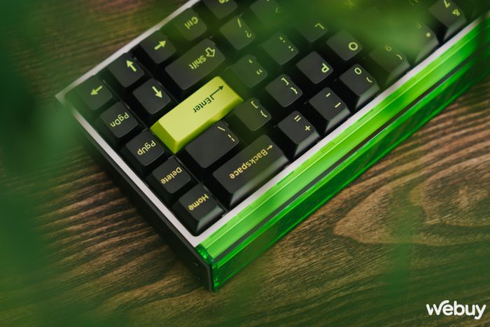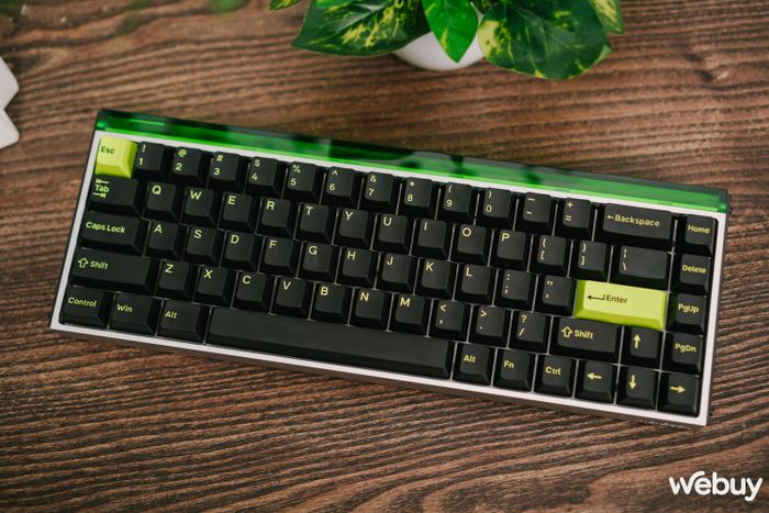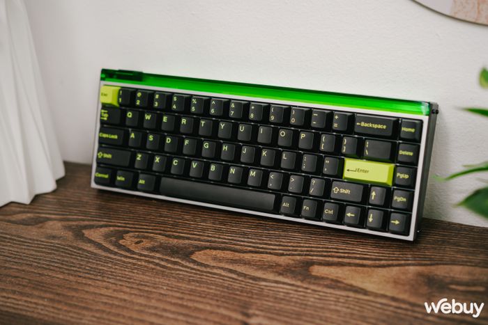 Khi nhìn vào phần trên của bàn phím, như đã nói, đây là mẫu bàn phím 65%, tức là đã loại bỏ hàng phím Function và cụm phím Numpad. Đối với những người sáng tạo nội dung như tôi hoặc các lập trình viên, việc sử dụng phím Fn + Số để thay thế cho những phím này là hoàn toàn khả thi. Tuy nhiên, những bạn làm kế toán đã quen với việc sử dụng phím số, hay những game thủ thường xuyên sử dụng các phím Function sẽ cần suy nghĩ kỹ trước khi chọn lựa.