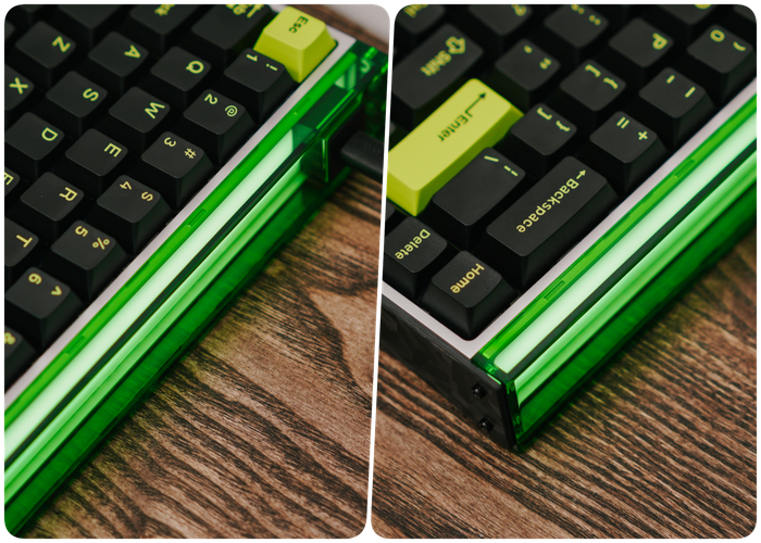 Mặc dù đèn thực tế có màu trắng, nhưng khi xuyên qua lớp nhựa, ánh sáng sẽ chuyển sang màu xanh neon. Theo thông tin tôi tìm hiểu, MADE68 Ultra còn có thêm hai phiên bản màu đỏ và trắng, mỗi phiên bản sẽ đi kèm với một màu đèn phù hợp với tông màu của bàn phím.