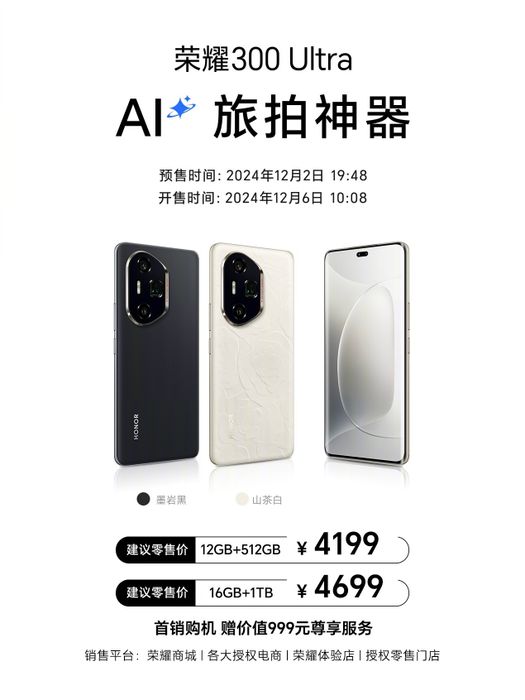 HONOR 300 Ultra cung cấp hai màu sắc lựa chọn: Đen và Trắng. Tại Trung Quốc, giá bán của sản phẩm với các tùy chọn cấu hình như sau: