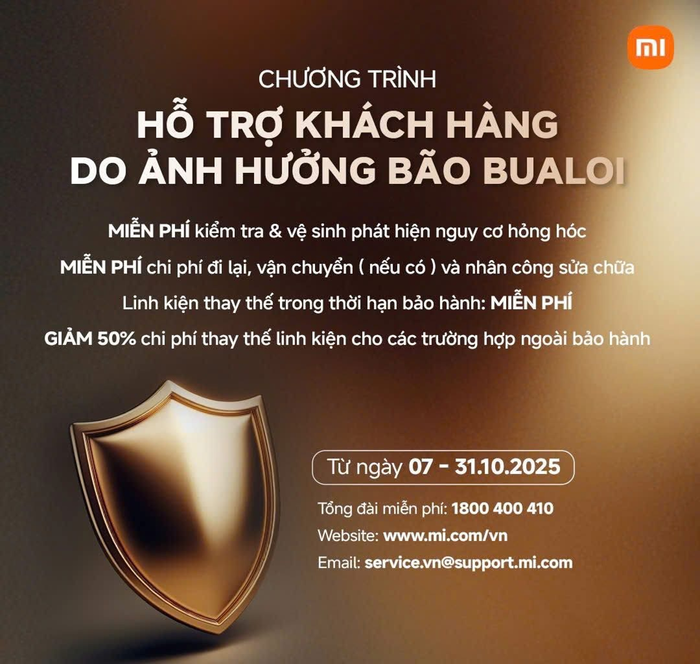 Sau bão lũ, các thương hiệu OPPO, Xiaomi và HONOR triển khai chương trình hỗ trợ đặc biệt, cung cấp nhiều dịch vụ thiết thực. Người dùng sẽ được kiểm tra và vệ sinh thiết bị miễn phí, thay linh kiện miễn phí nếu trong thời gian bảo hành, hoặc giảm 50% chi phí linh kiện khi hết bảo hành, giúp người dùng nhanh chóng phục hồi và yên tâm sử dụng thiết bị.