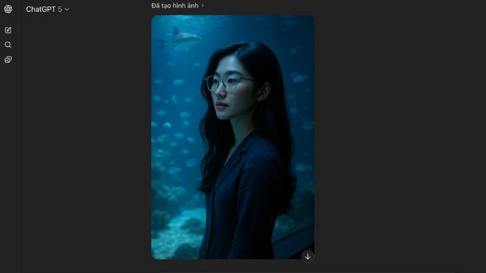 Prompt: Sử dụng khuôn mặt này — không được cải tiến hay thay đổi bất kỳ chi tiết nào — tạo ra một hình ảnh chụp trong một bể cá lớn. Tập trung vào một người phụ nữ trẻ với mái tóc dài và tối. Nguồn sáng chính là ánh sáng từ chính bể cá, tạo ra một ánh sáng xanh dịu dàng, bao phủ cô ấy và mang đến một cảm giác mơ màng, huyền bí. Phong cách & Chất lượng: Siêu chi tiết, HDR, 8K, chụp hình thời trang chuyên nghiệp.