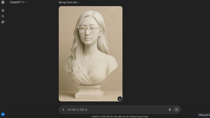 Prompt: Tạo một tượng bán thân chân thực, tái tạo khuôn mặt của một [người phụ nữ/người đàn ông] dựa trên bức ảnh tôi cung cấp. Tượng bán thân nên được chạm khắc bằng chất liệu trắng tinh khiết, đặt trên một bệ đế tinh tế với tên [Tên của bạn] được khắc phía trước, như một sự tri ân tinh tế dành cho người được khắc họa. Phông nền nên giữ trung tính và nhẹ nhàng, để làm nổi bật vẻ đẹp của từng đường chạm khắc, từ ánh mắt, đường nét khuôn mặt đến những chi tiết nhỏ nhất trên bức tượng. Tất cả tạo nên một tổng thể hài hòa, trang nghiêm và sâu sắc nghệ thuật.
