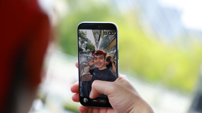 Bước 2: Điều chỉnh khung hình theo ý thích, Center Stage sẽ tự động xoay ngang hoặc dọc và thay đổi mức thu phóng phù hợp. Sau đó, chỉ cần nhấn nút chụp để chụp ảnh hoặc quay video như bình thường.