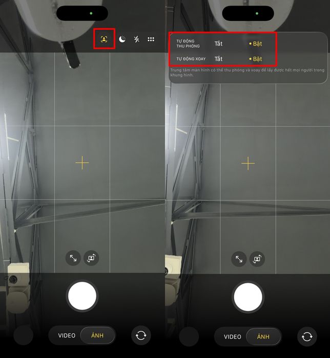 Để vô hiệu hóa tính năng này, hãy nhấn vào biểu tượng Center Stage (màu vàng) > Chọn mục Tự động xoay > Sau đó nhấn Tắt để tắt tính năng tự xoay khung hình.