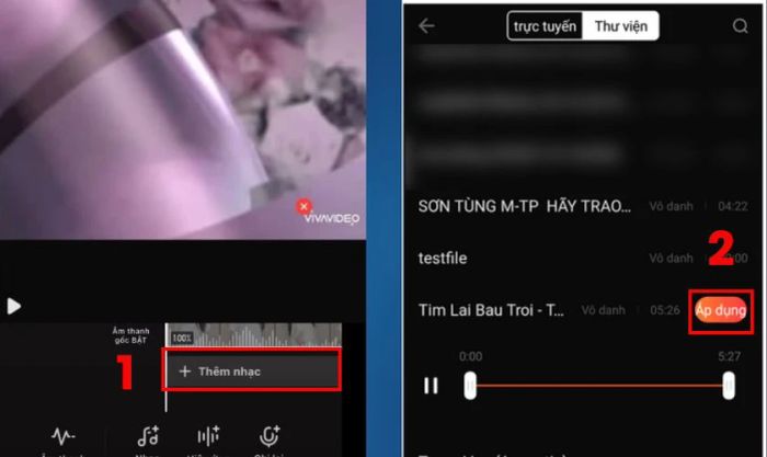 Bước 2: Bạn nhấn vào Thêm nhạc, chọn bài nhạc phù hợp và nhấn Áp dụng để thêm vào video.