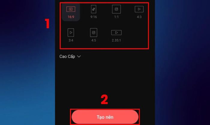 Bước 2: Tiếp theo, bạn chọn tỷ lệ khung hình phù hợp cho video và nhấn vào Tạo nên để tiếp tục.