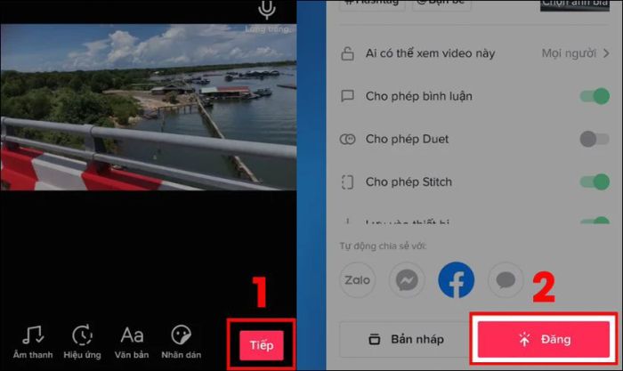 Bước 6: Nhấn vào nút Tiếp, sau đó chọn Đăng để hoàn thành quá trình.