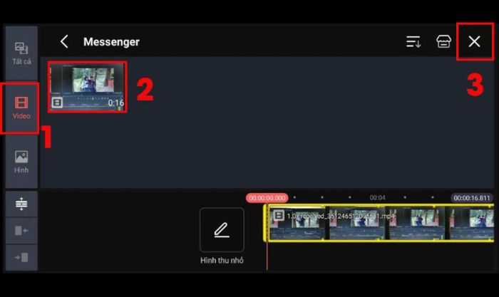 Bước 3: Chọn mục Video, sau đó chọn video bạn muốn chỉnh sửa và nhấn vào dấu x để xác nhận.