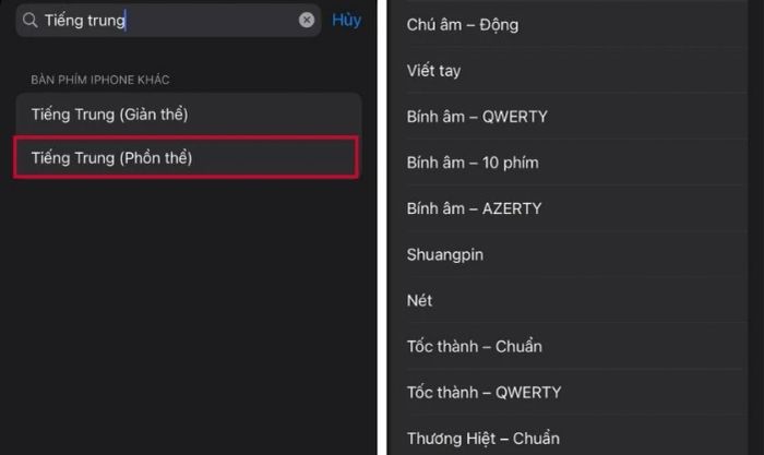 Bây giờ, bạn chỉ cần chọn loại tiếng Trung mà mình muốn sử dụng để thiết lập cho bàn phím iPhone.