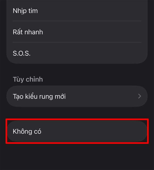 Bước 2: Kéo xuống cuối danh sách và chọn tùy chọn Không có. Cách này sẽ tắt hoàn toàn âm thanh báo thức, chỉ để lại chế độ rung.