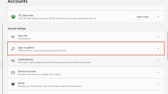 Bước 3: Trong mục Accounts, chọn Sign-in options.