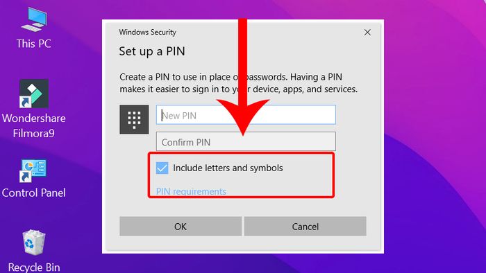 Khi thay đổi mật khẩu hoặc mã PIN, đừng quên tick chọn Include letters and symbols để tạo mật khẩu có sự kết hợp giữa chữ cái, số và ký tự đặc biệt.