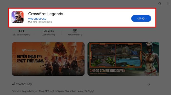 Bước 4: Gõ từ khóa CrossFire Legends vào ô tìm kiếm, chọn Cài đặt để tải game về máy tính của bạn.