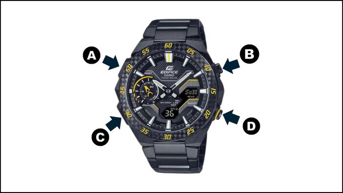 Dòng Edifice ECB-2200RC-1A9DF sở hữu bố cục 4 nút bấm được thiết kế khoa học quanh viền đồng hồ. Mỗi phím đều được lập trình với những chức năng chuyên biệt, hỗ trợ người dùng thực hiện các tác vụ một cách nhanh chóng và chính xác.