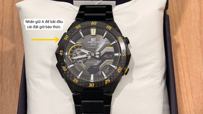 - Thao tác 3: Nhấn và giữ phím A để bắt đầu thiết lập thời gian báo thức.