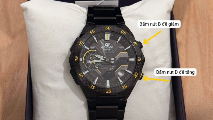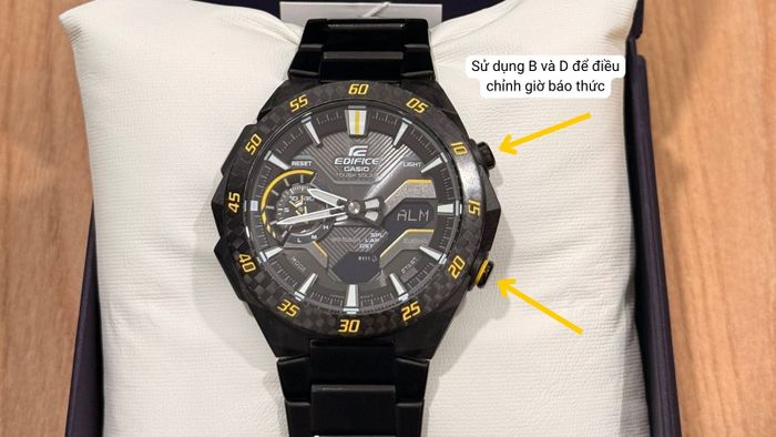 Sử dụng nút B và D để tùy chỉnh giờ báo thức mong muốn