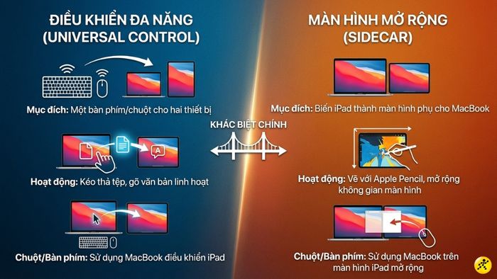 Universal Control (điều khiển liên hợp) là một trong những tính năng nổi bật của Apple, giúp tối ưu trải nghiệm làm việc khi bạn có thể dùng chung một bộ chuột và bàn phím cho nhiều thiết bị. Bài viết này sẽ hướng dẫn bạn cách dùng Universal Control để liên kết MacBook với iPad nhanh chóng và đơn giản.