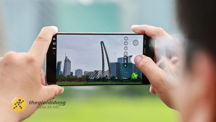 Bước 4: Tiến hành chụp ảnh như bình thường với các hiệu ứng có sẵn > Sau đó, nhấn vào biểu tượng lưu ở góc phải màn hình để lưu ảnh về máy mà không có logo.