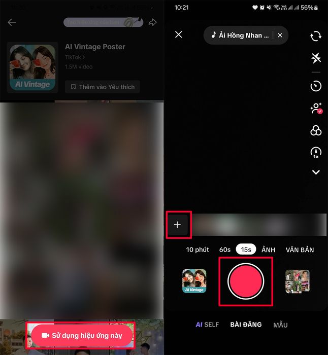 Bước 2: Nhấn vào mục Sử dụng hiệu ứng này để tạo ảnh hoạt hình miễn phí. Sau đó, bạn có thể nhấn quay gương mặt ngay lập tức hoặc chọn biểu tượng Dấu + để tải ảnh từ bộ sưu tập của mình lên.
