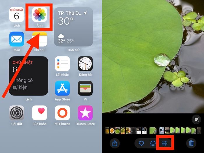 Bước đầu tiên: Khởi động ứng dụng Ảnh > Chọn bức ảnh cần chỉnh sửa > Nhấn vào nút Chỉnh sửa (Edit) ở góc phải phía dưới màn hình.