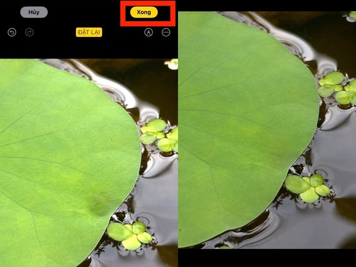 Bước bốn: Kiểm tra lại hình ảnh sau khi chỉnh sửa > Bấm Xong (Done) để hoàn tất quá trình lưu ảnh.