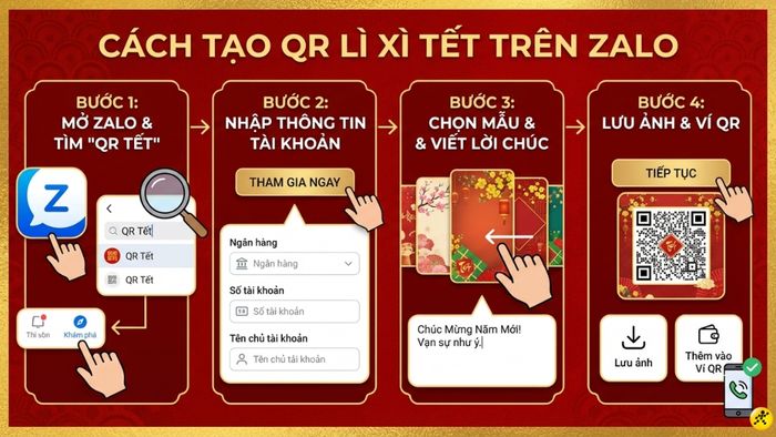 Các bước chi tiết để tạo mã QR lì xì ngân hàng trên Zalo (QR Tết):