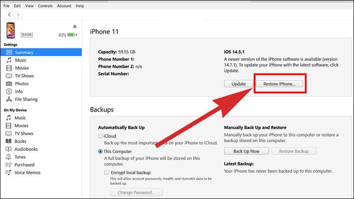 3. Cách xóa iPhone qua iTunes/Finder trên máy tính