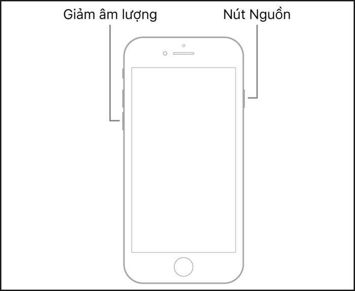 - Nhấn và giữ đồng thời nút Giảm âm lượng + Sườn cho đến khi iPhone vào Chế độ khôi phục.
