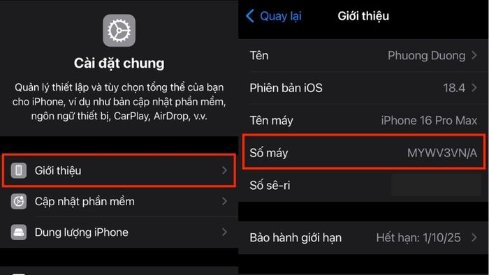Cách thực hiện: Truy cập Cài đặt > Cài đặt chung > Giới thiệu > Mã số thiết bị
