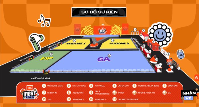1.1. Vé GA áp dụng cho khách hàng mua sản phẩm JBL trị giá trên 1,000,000 VNĐ và đã kích hoạt bảo hành từ ngày 01/01/2025 đến 30/09/2025. Những khách hàng đủ điều kiện sẽ nhận thông báo qua tin nhắn từ PGI gửi đến số điện thoại đăng ký bảo hành. Làm theo hướng dẫn trong tin nhắn để truy cập website jblfest.vn và hoàn tất quy trình đổi vé.