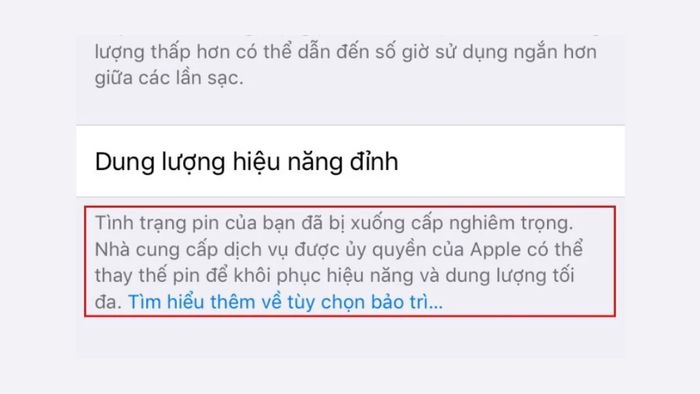 - Dung lượng pin dưới 80%: Apple khuyến cáo khi pin giảm xuống dưới ngưỡ này sẽ ảnh hưởng rõ rệt đến hiệu suất và thời gian sử dụng.