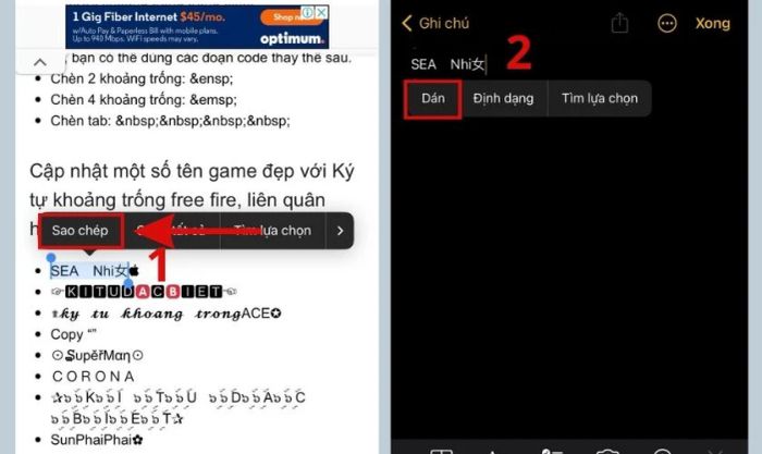 - Bước 1: Giữ dòng chữ 'SEA Nhi女' ở trên và sao chép nội dung.