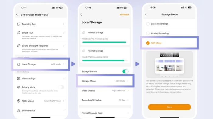Khi không có sự kiện, camera IMOU với AOR sẽ tự động ghi hình ở 1fps (1 khung hình/giây), giúp tiết kiệm dung lượng lưu trữ tối đa.