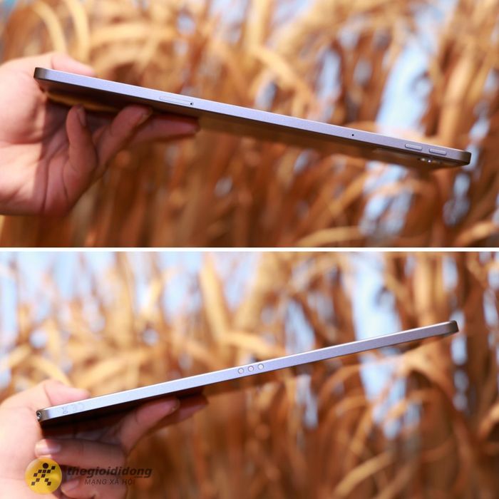 Cạnh trên của máy tích hợp loa kép Dolby Atmos và nút nguồn. Cạnh dưới tiếp tục là loa kép, cổng sạc USB-C cùng cổng tai nghe mm. Cạnh trái chứa micro, khe SIM và nút điều chỉnh âm lượng, trong khi cạnh phải có cổng nam châm dùng để kết nối phụ kiện rời.