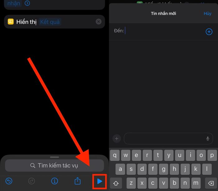 Bước 4: Chạm vào biểu tượng phát (hình tam giác) ở góc phải phía dưới để kiểm tra hoạt động của phím tắt trước khi sử dụng chính thức.