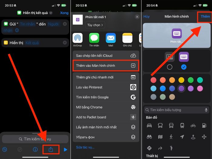 Chọn biểu tượng chia sẻ > Bấm Thêm vào Màn hình chính > Tùy chọn màu nền và biểu tượng ưa thích > Xác nhận Thêm để hoàn tất quá trình.