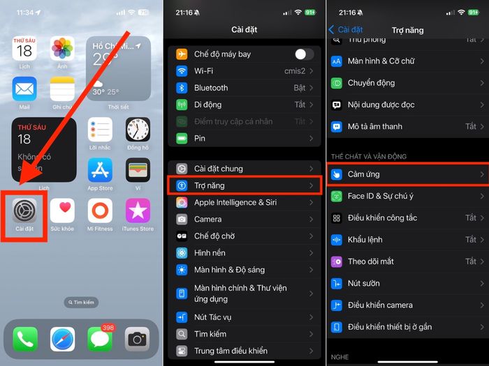 Mở Cài đặt > Trợ năng > Mục Cảm ứng