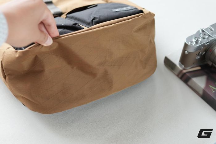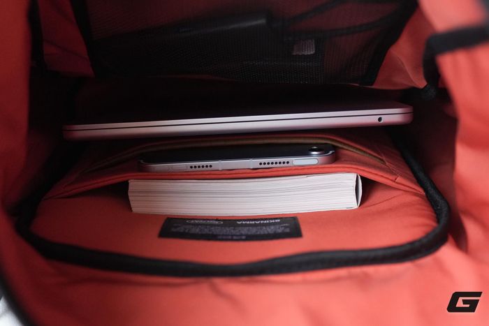 Tôi đã thử bỏ 1 cuốn sách, 1 chiếc iPad Mini, 1 MacBook Air 15 inch và vẫn còn dư không gian. Nếu thêm một túi chống sốc cho máy ảnh cỡ vừa thì vẫn thoải mái.
