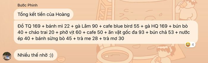Quả thật vậy, dạo gần đây, mỗi lần đi ăn, chúng tôi cứ phải tính đi tính lại xem ai đã trả bao nhiêu rồi, ai chưa. Có người thì 'om' tiền mấy hôm mới trả, đến lúc đó thì tình huống như thế này sẽ xảy ra.