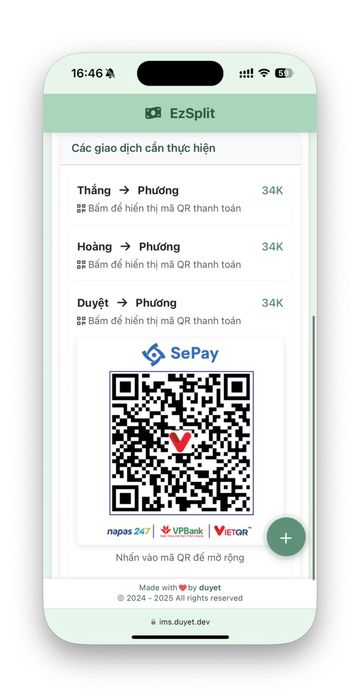Sau khi demo cho nhóm đồng nghiệp dùng thử, có người gợi ý thêm tính năng hiển thị mã QR để chuyển khoản trực tiếp, một ý tưởng hợp lý, nhất là trong thời đại chuyển khoản chỉ mất 5s như hiện nay.