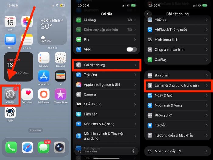 Làm mới ứng dụng trong nền (Background App Refresh) là tính năng cho phép các ứng dụng trên iPhone tự động làm mới nội dung và dữ liệu mới ngay cả khi bạn không sử dụng chúng trực tiếp.
