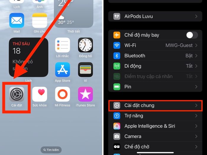 Bước 1: Mở Cài đặt > Chọn Cài đặt chung.
