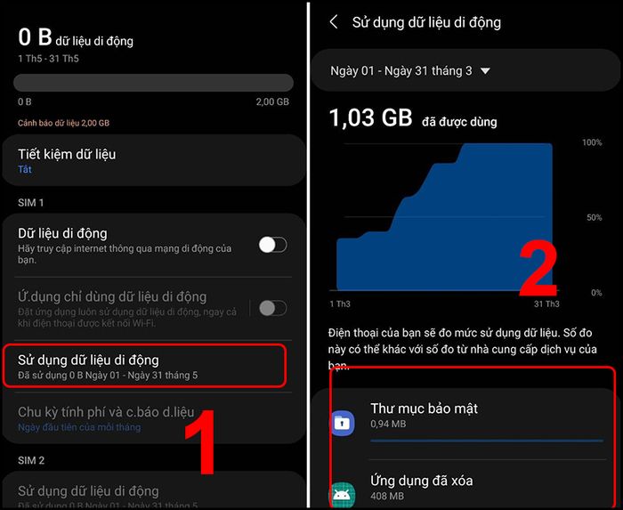 Tại mục Sử dụng dữ liệu di động, bạn cũng có thể kiểm tra số dung lượng đã tiêu thụ.