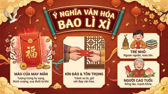 Màu đỏ của phong bao và hành động trao nhận mừng tuổi chứa đựng nhiều ý nghĩa nhân văn sâu sắc: